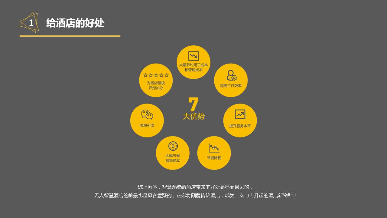 1、全自助、多功能、一站式服务——客人关注酒店公众号并注册会员后,即可通过微信实现订房、选房、支付、导航、连Wifi、开锁、开启灯光、调节温度、开启电视、消费查询、点餐、呼叫管家和客服、SOS、续住、退房等功能,大大方便了宾客使用,给宾客以全新科技体验!